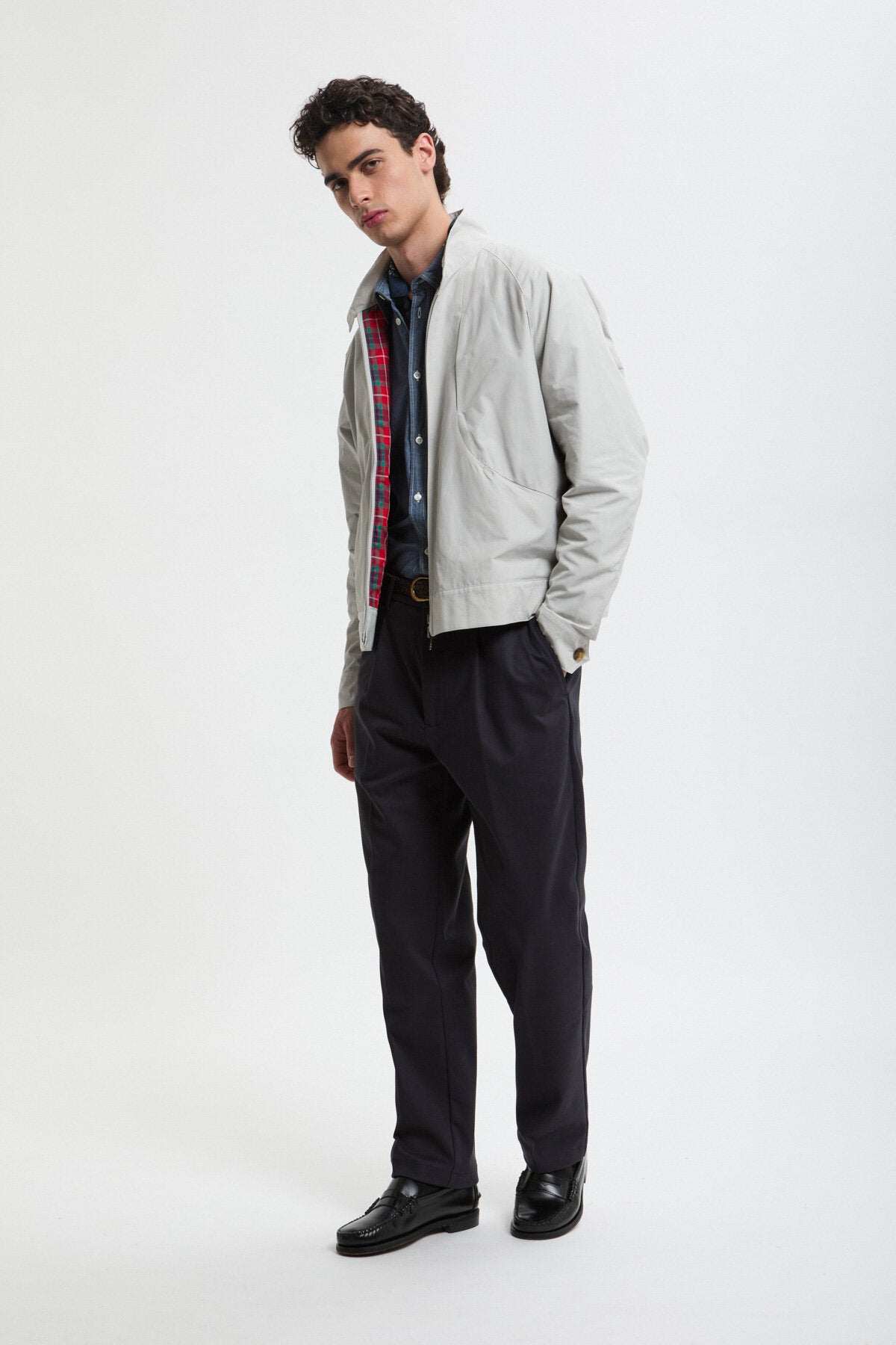 • Die Baracuta x BAL G9 Jacke vereint mühelos das ikonische Erbe von Baracuta mit dem modernen Designethos von BAL. Diese mit Präzision gefertigte Zusammenarbeit ehrt die zeitlosen Elemente der ursprünglichen G9 – darunter die charakteristische Regenschirm-Rückenpasse, den Stehkragen mit Doppelknopfverschluss und das klassische Fraser-Tartan-Futter – und führt zugleich innovative Details für den modernen Träger ein.