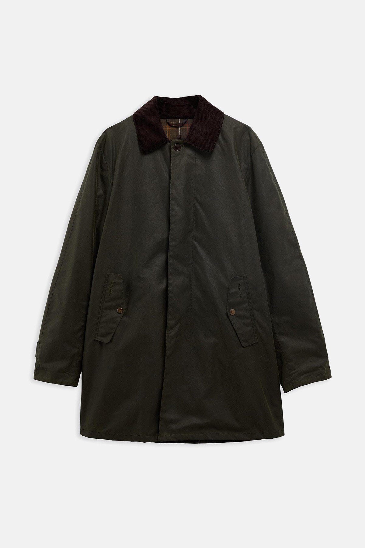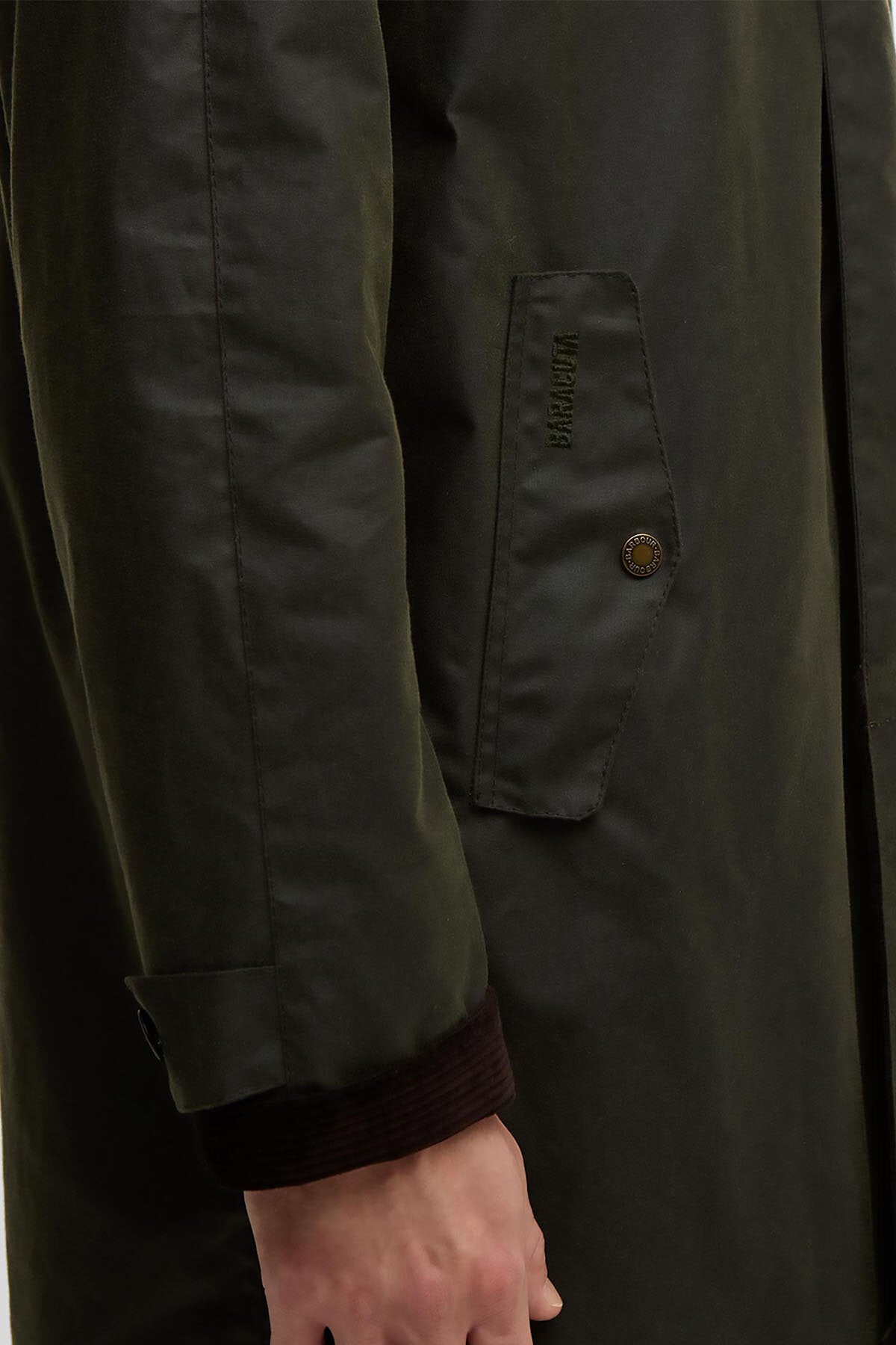 Der neue Barbour x Baracuta Tyne Waxed Coat ist von einem Klassiker von Baracuta, dem G10, inspiriert. Dieser Mantel mit dem unverkennbaren Design von Barbour wurde aus unserer gewachsten Sylkoil-Baumwolle (170 g) gefertigt und mit einem Kragen aus Cordstoff (8 Rippen pro Zoll) für einen langlebigen und zeitlosen Look versehen. Mit vorne eingesetzten, hinten im Raglan-Schnitt ausgeführten Ärmeln und einer Regenschirm-Rückenpasse ist dieser Mantel perfekt für nasses Wetter.
