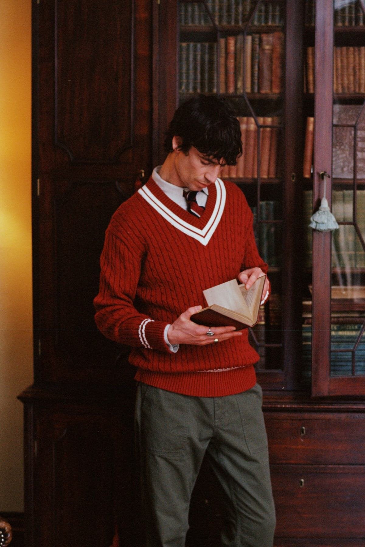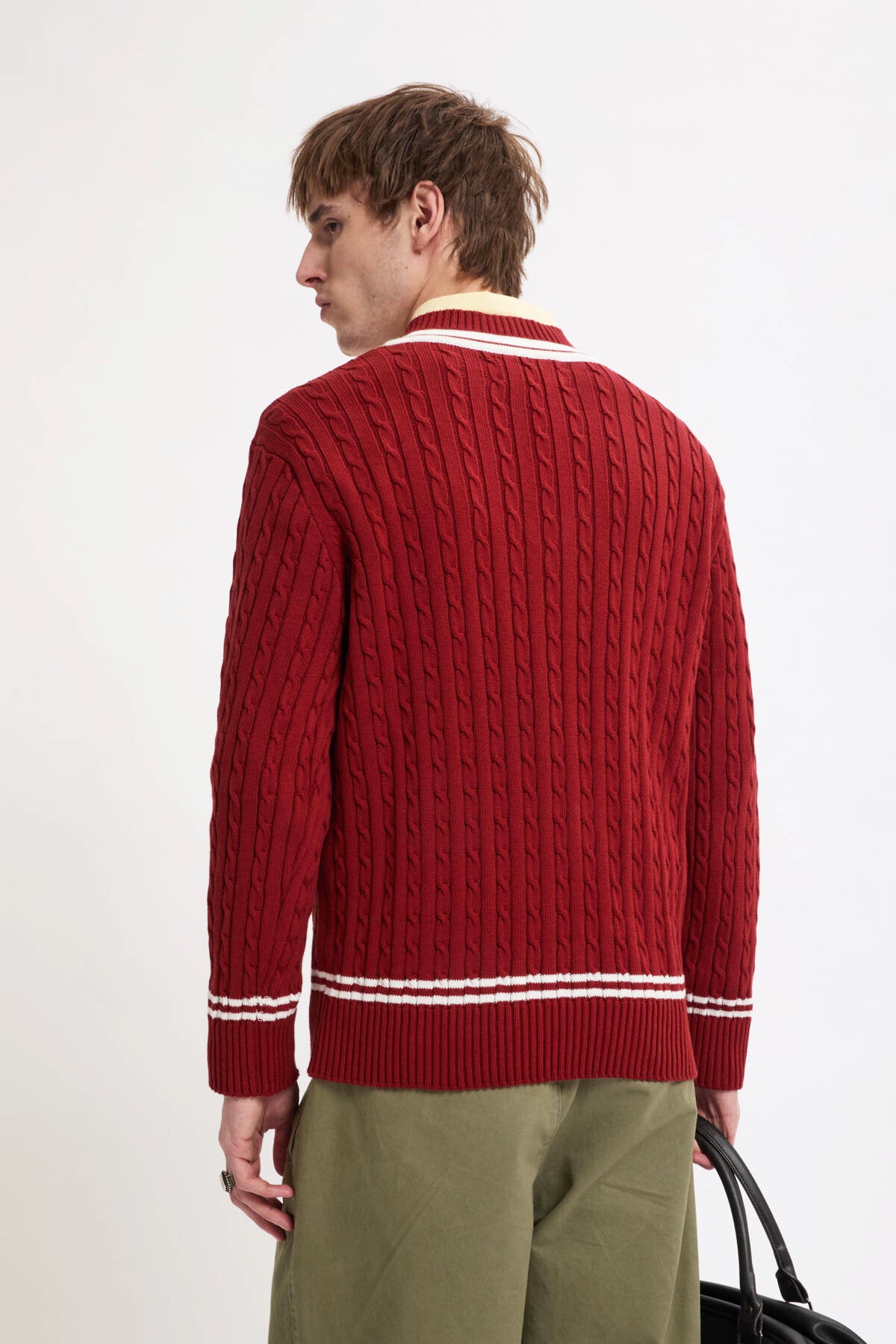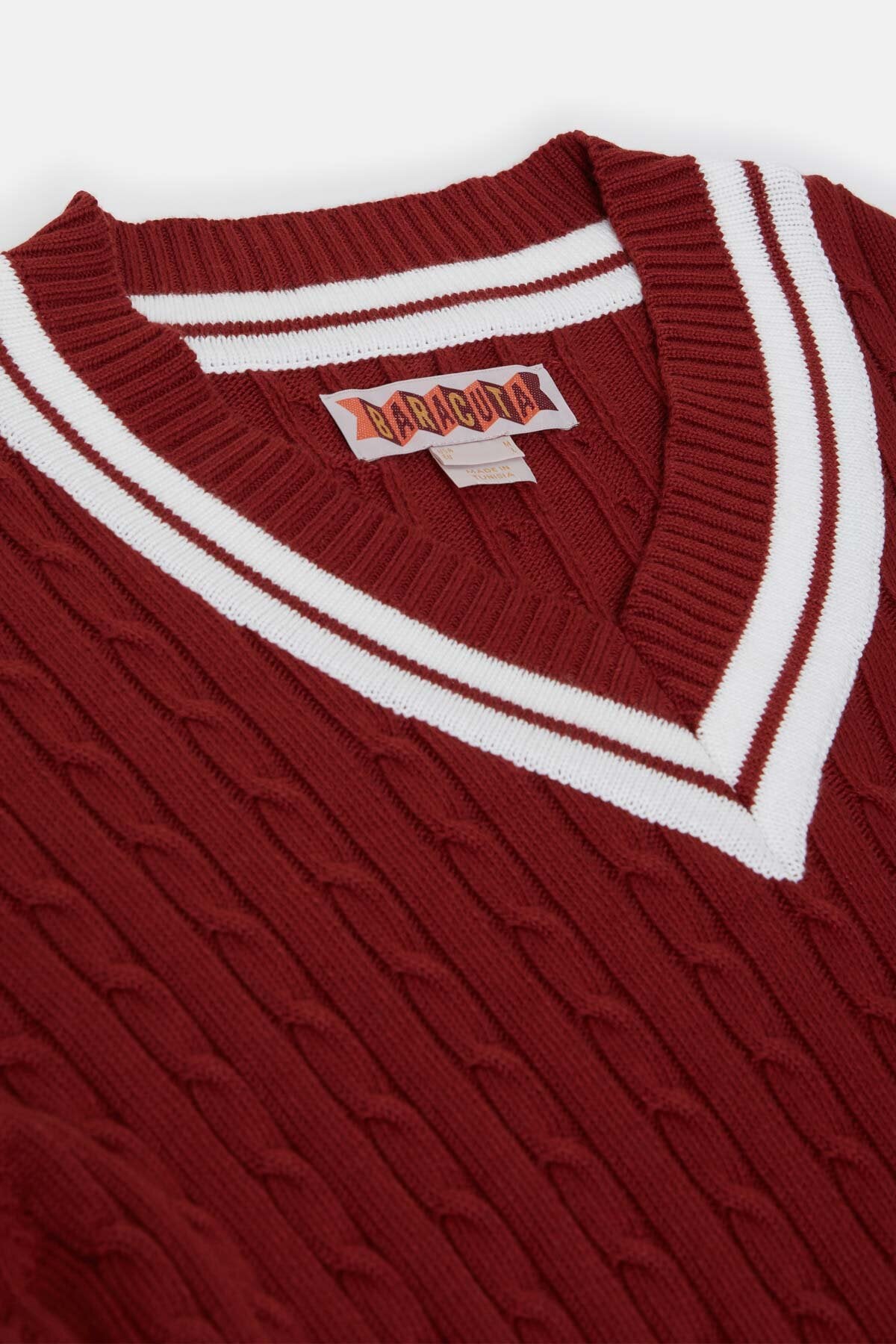 • Der Cricket V‑Neck besteht aus 100 % Baumwollstrick im Cable‑Knit‑Design – weich im Griff und zugleich robust genug für den täglichen Einsatz.