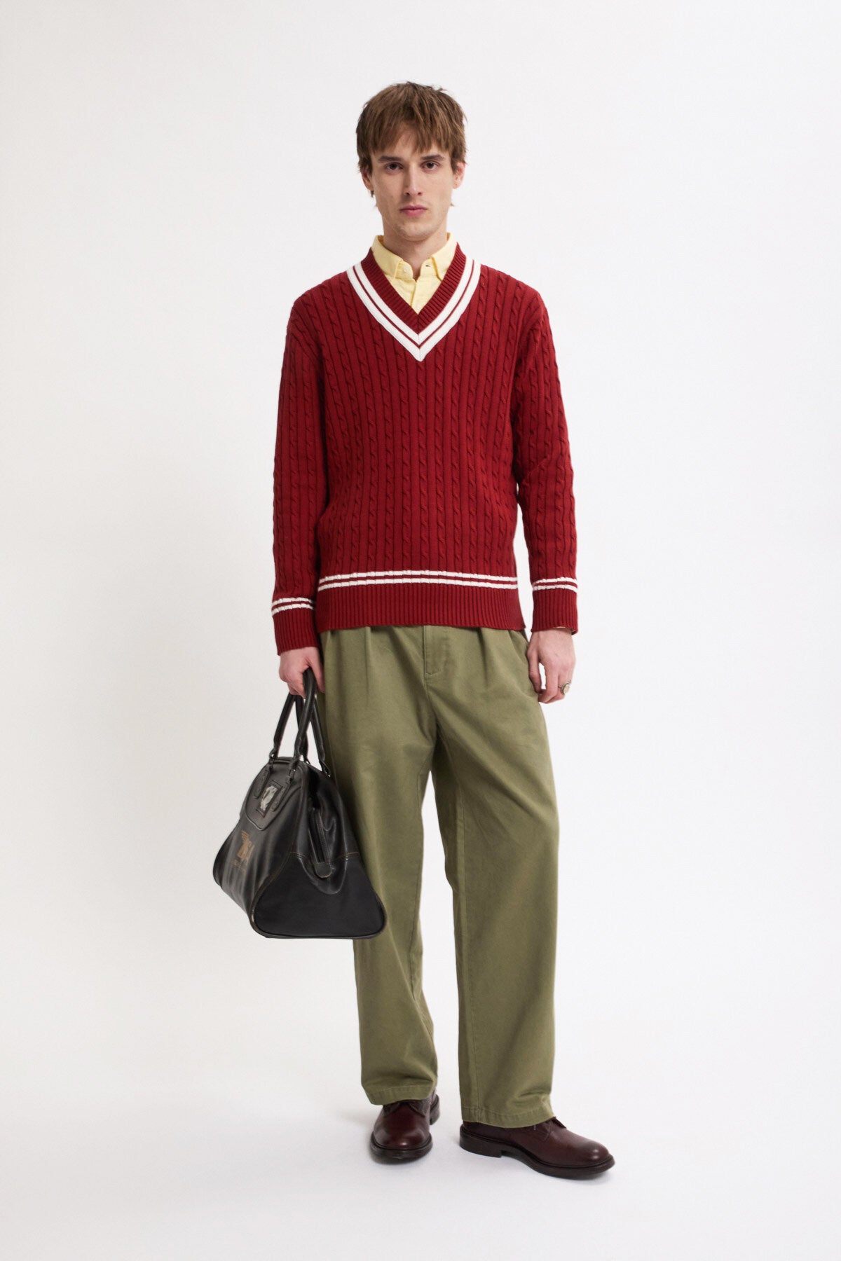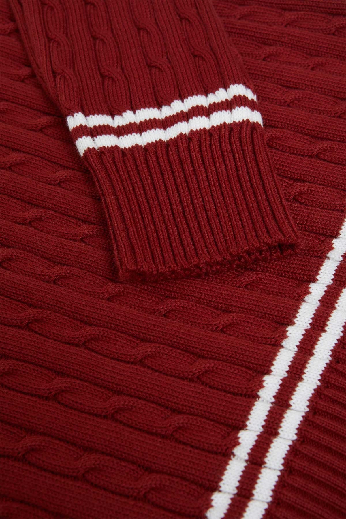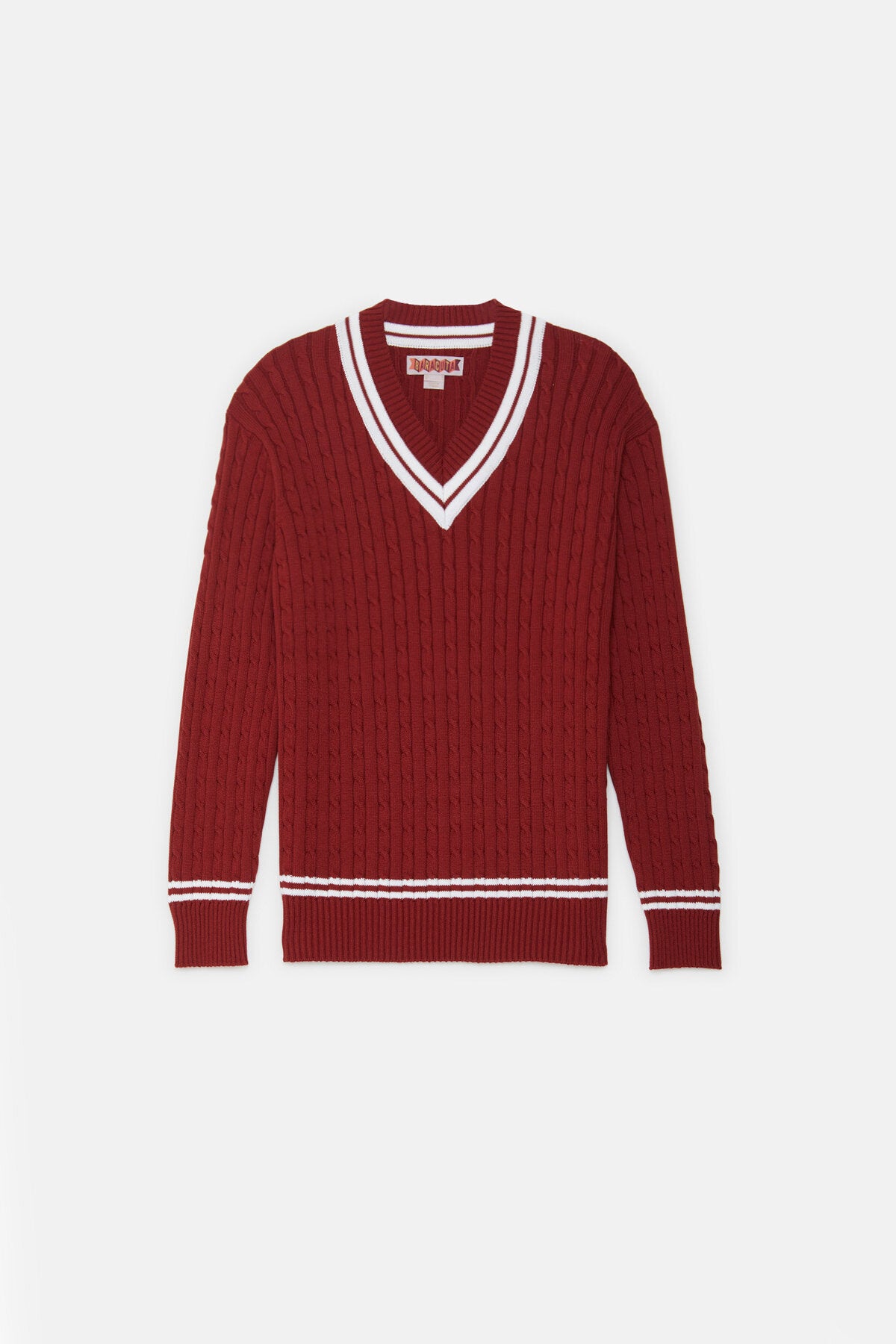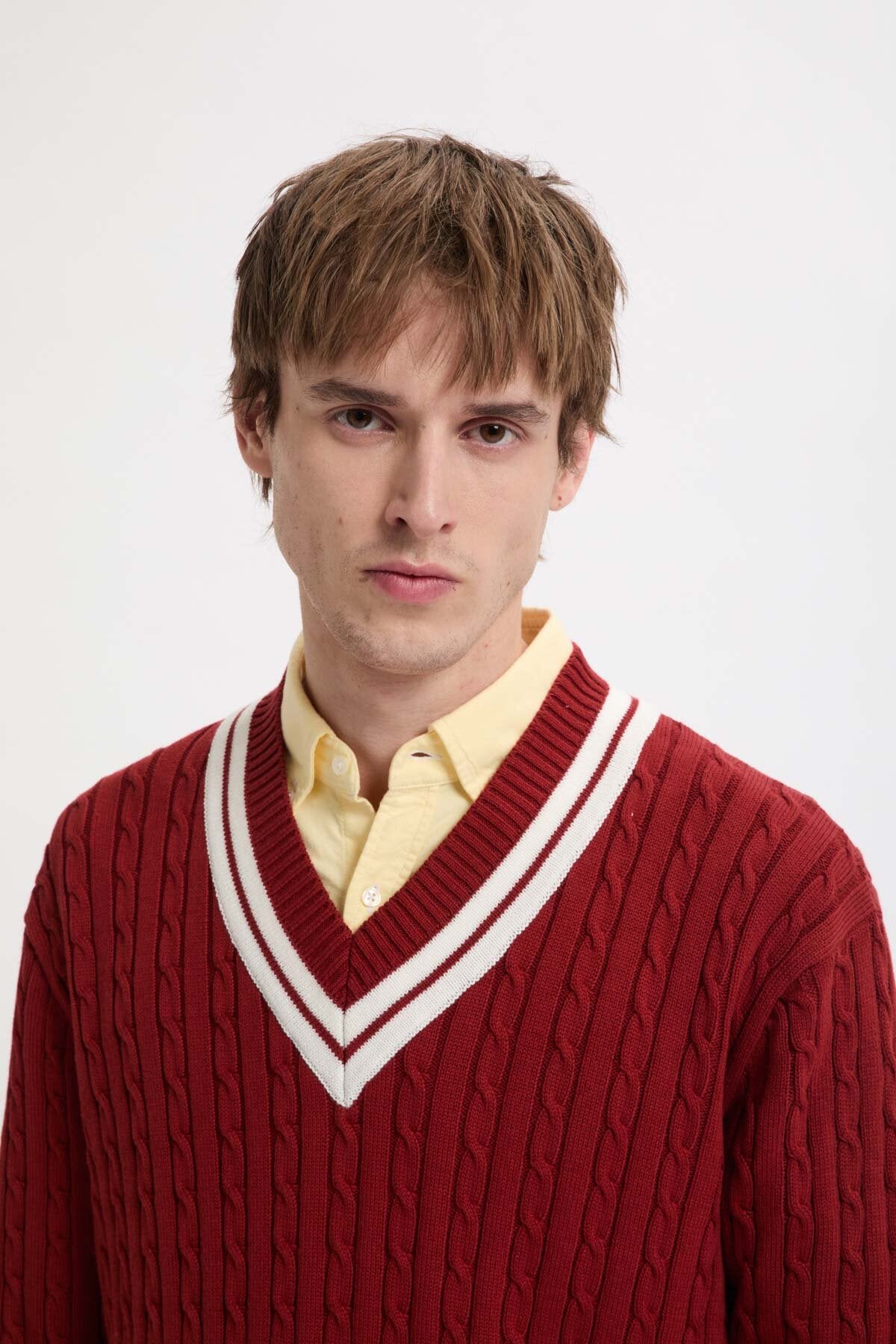 • Der Cricket V‑Neck besteht aus 100 % Baumwollstrick im Cable‑Knit‑Design – weich im Griff und zugleich robust genug für den täglichen Einsatz.
