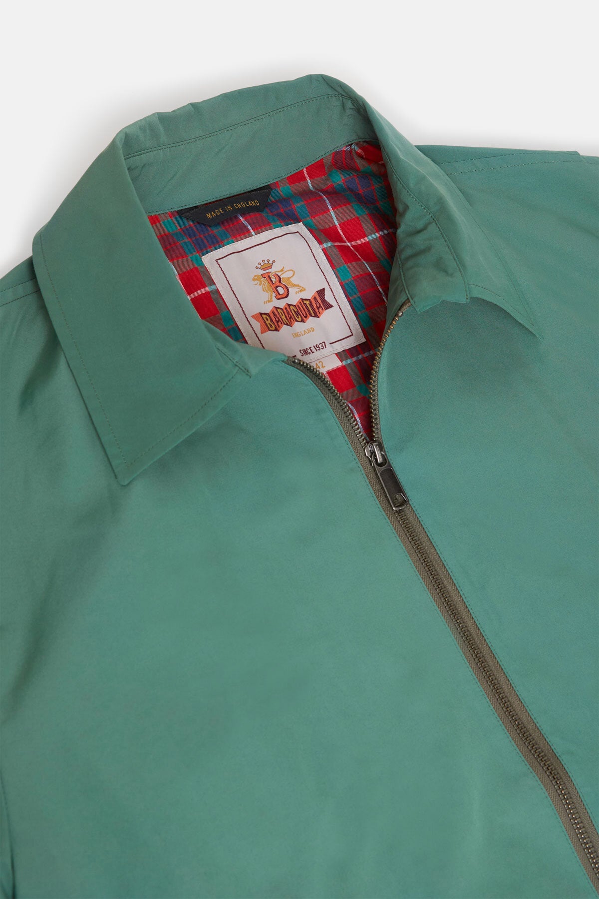 • Die Baracuta G18 interpretiert einen Klassiker der späten 1960er-Jahre neu – mit klarer, moderner Kante, gefertigt aus dem ikonischen Baracuta Cloth, stolz hergestellt im Vereinigten Königreich. Die entspannte Silhouette bewegt sich dank zweier Bewegungsfalten mühelos mit, während der Kragenriegel mit Einzelknopfverschluss, der Zweiwege-Reißverschluss mit Logo und die vom Blouson-Design der 1970er inspirierten Taschen für einen unverwechselbaren, zugleich authentischen Look sorgen – funktional und ganz ohne Schnörkel. Vollständig mit dem charakteristischen Fraser-Tartan gefüttert, ist die G18 sowohl für die Stadt als auch für das Land gemacht. Mehr als nur eine Neuauflage: Ein bewusstes Designstatement. Jedes Detail steht für den Dialog zwischen Tradition und Moderne, Funktionalität und Stil: Ein Ausdruck von Baracutas anhaltender kultureller Relevanz.