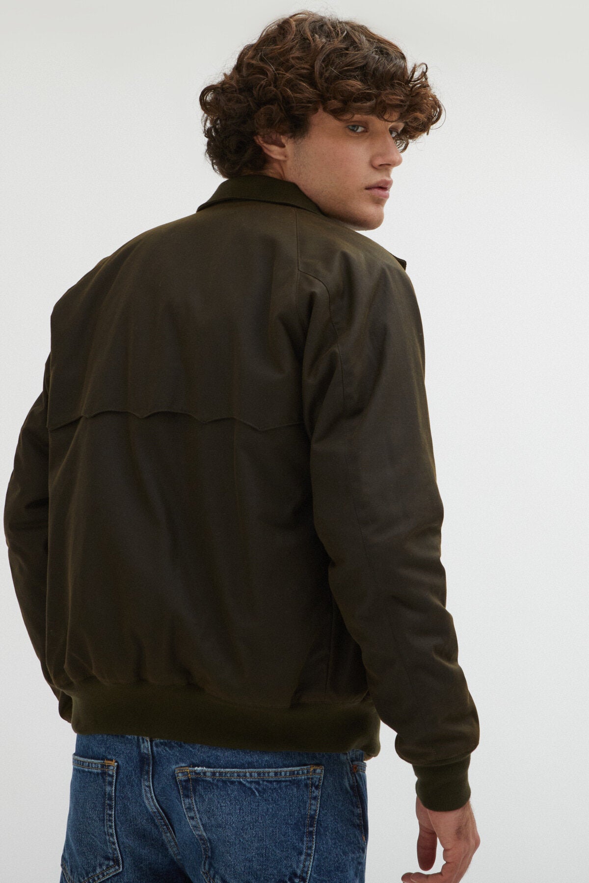 • Mit unserer G9 Jacke aus gewachster Baumwolle von British Millerain mit Taschen, dem ursprünglichen Hersteller dieses Stoffes seit 1880, sind Sie für nasses und windiges Wetter gerüstet. Die Authentic Fit-Jacke ist weiter und entspannter als die Regular Fit-Jacke, die Sie in unserm klassischen G9 Harrington finden. Die Jacke hat eine leichte Änderung der traditionellen G9-Merkmale: Anstelle der charakteristischen schrägen Seitentaschen haben wir zwei größere Taschen in der Mitte der Jacke angebracht. Zu den weiteren Merkmalen des G9 gehören der kultige Schirmrücken und der klassische Eselsohr-Kragen mit zwei Knöpfen. Tragen Sie ihn mit unserem gewachsten Bucket Hat für maximalen Schutz vor Regen!