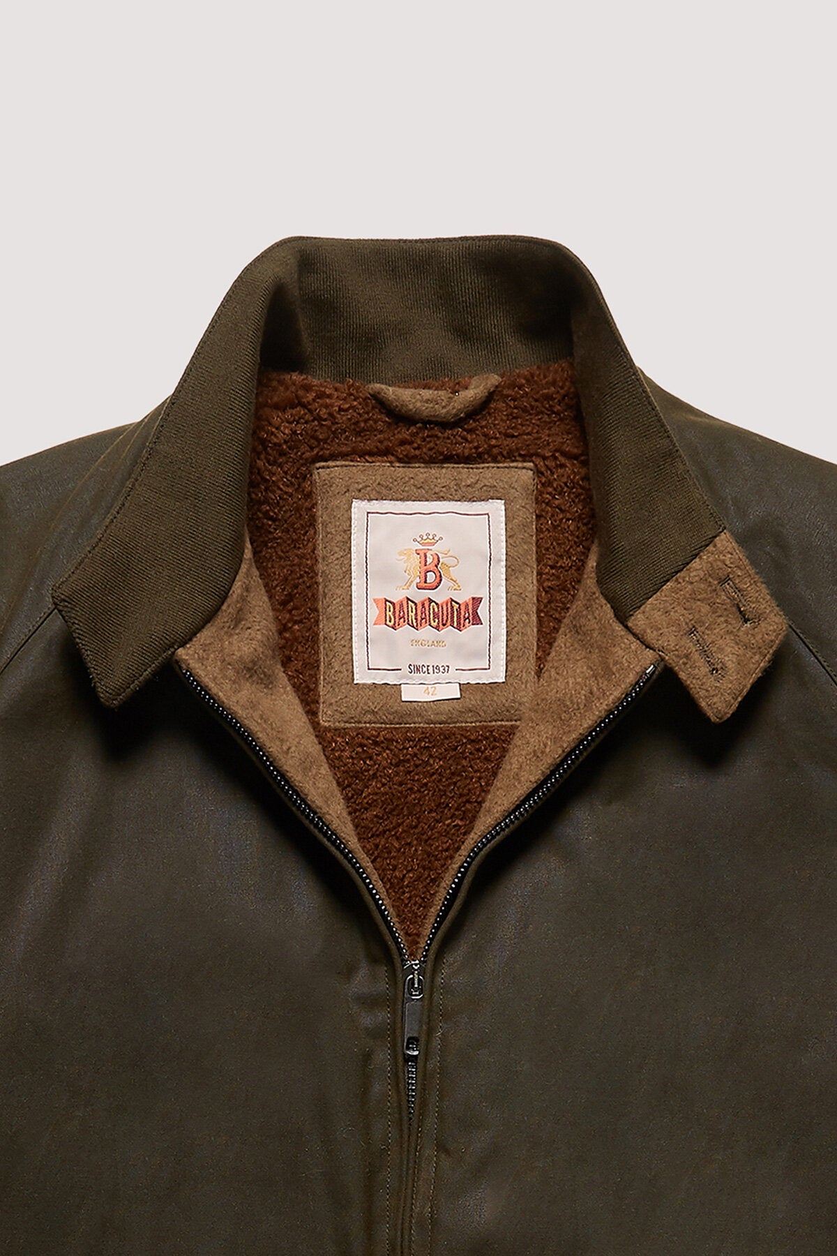 • • Baracuta-Kragen mit zwei Knöpfen und gerippter Innenseite