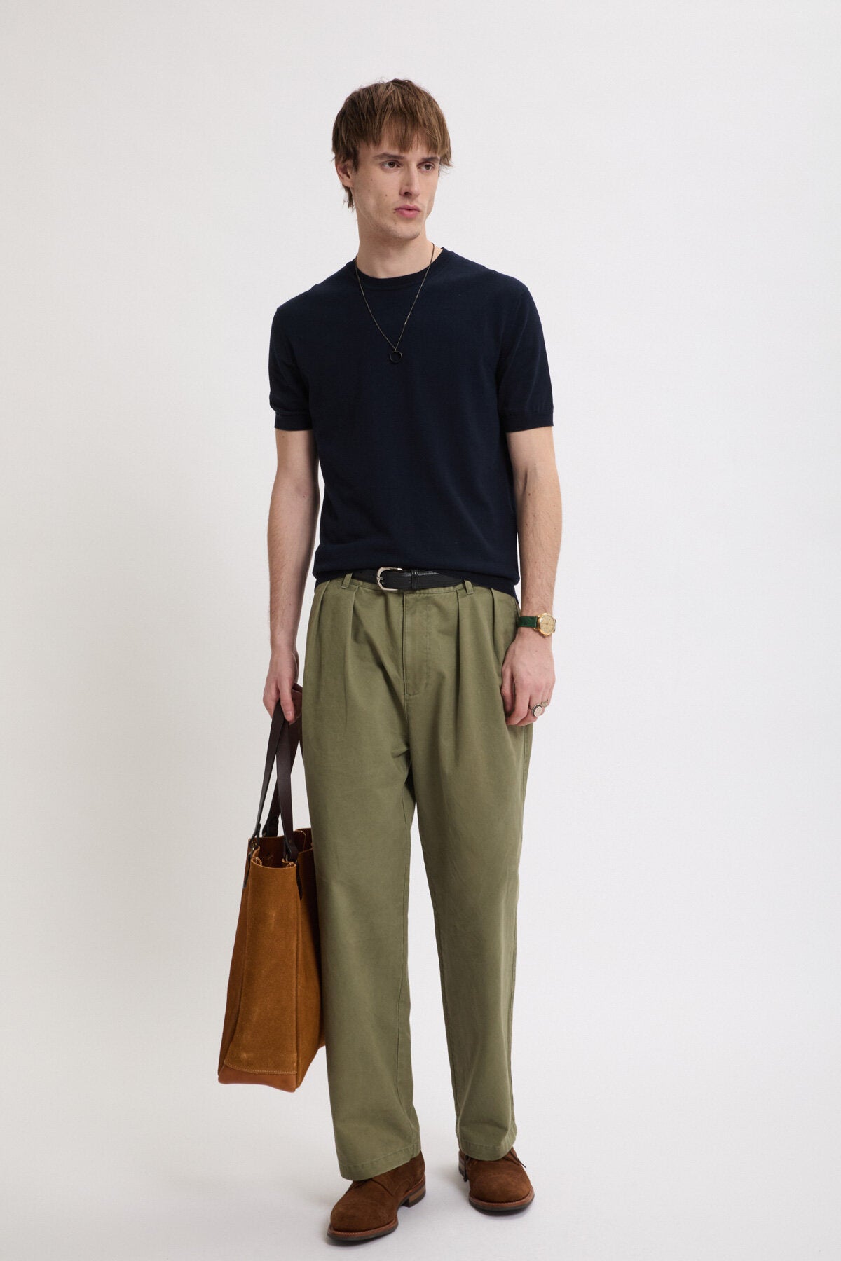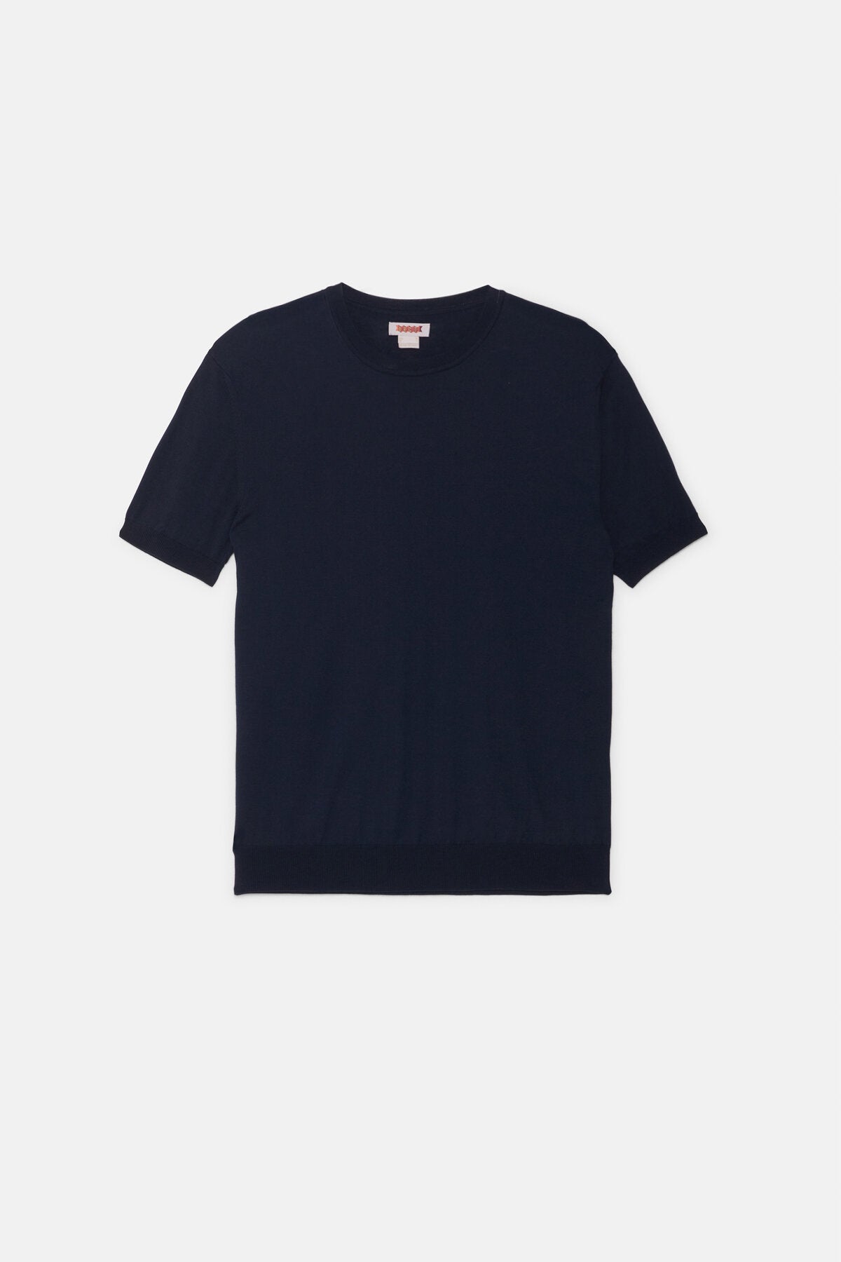 Das Strick-T-Shirt besteht aus 100 % Baumwolle und bietet ein weiches, atmungsaktives Tragegefühl und ein sauberes, strukturiertes Finish.