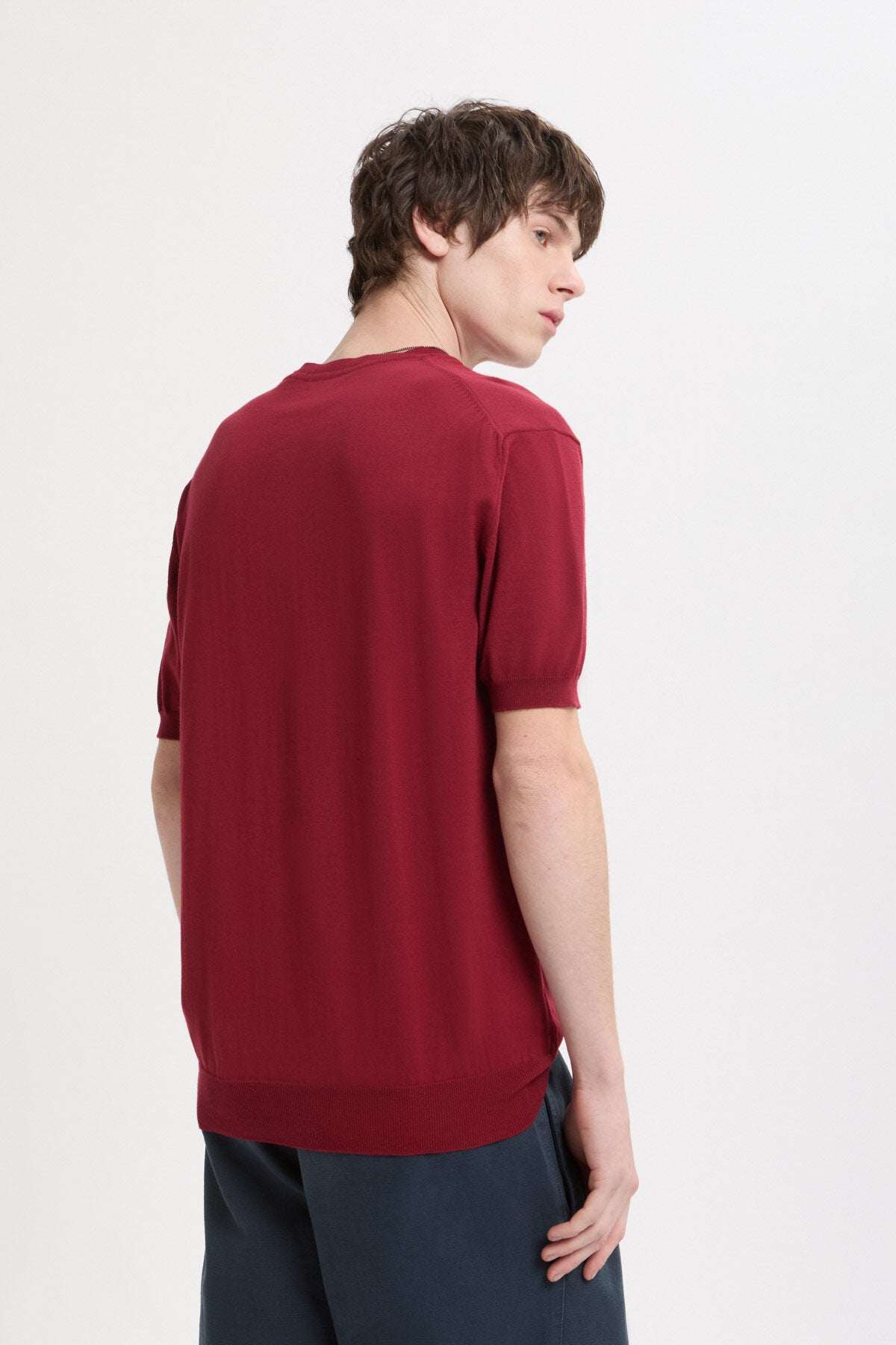 Das Strick-T-Shirt besteht aus 100 % Baumwolle und bietet ein weiches, atmungsaktives Tragegefühl und ein sauberes, strukturiertes Finish.