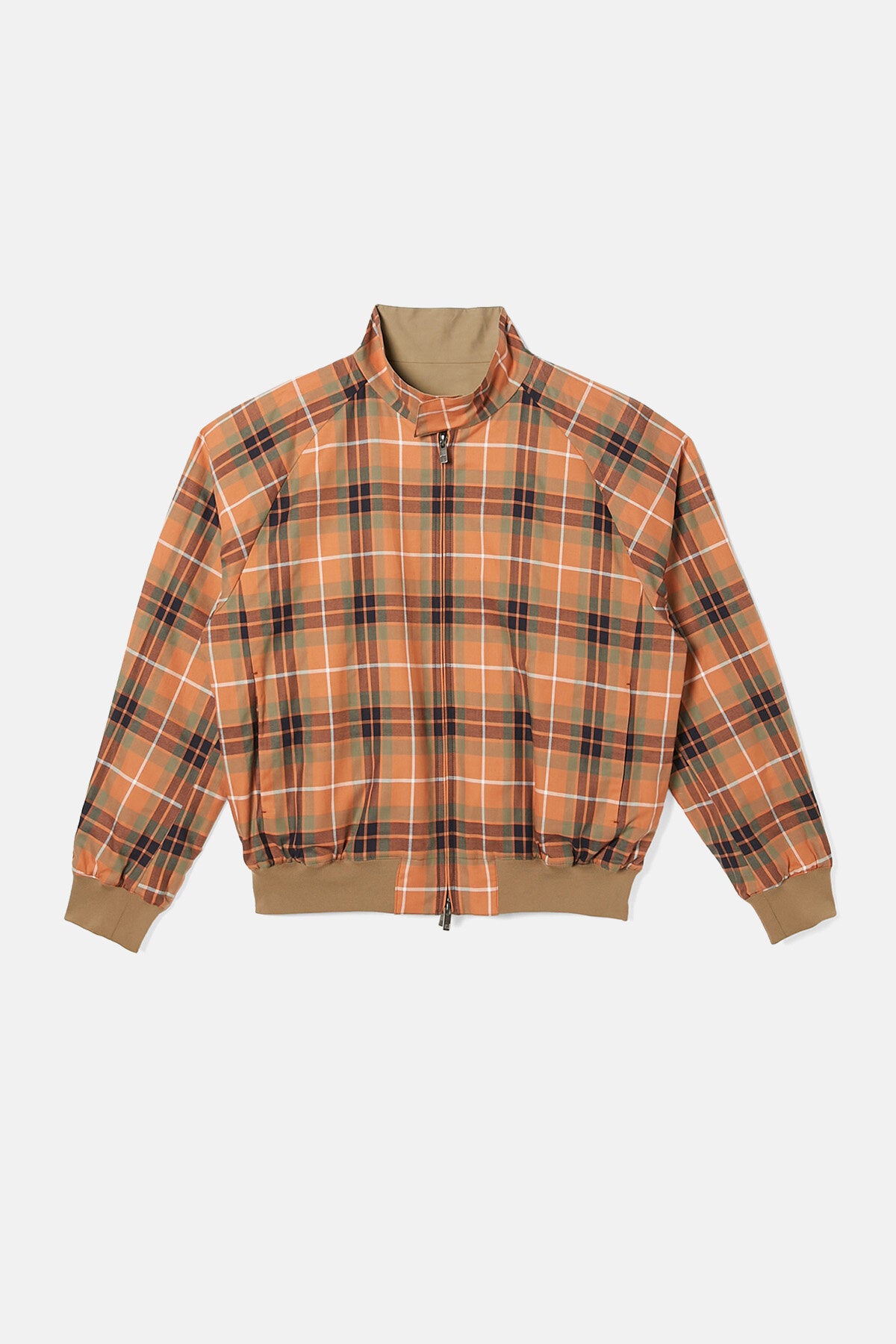 Diese komplett wendbare Jacke bietet zwei Styles in einem und zeigt eine exklusive Neuinterpretation von Baracutas klassischem Karomuster. Inspiriert von Vintage-Trainingsanzügen wurde das Saumbündchen verstärkt, um ein markanteres Finish zu erzielen, während der erweiterte Halsausschnitt subtil das Innenfutter hervorblitzen lässt. Hier kommt es auf die Details an: Ein Zweiwege-Frontreißverschluss ziert die für N.Hoolywood charakteristische Zuglasche aus Leder, in die das Markenlogo eingraviert ist, ergänzt durch Baracutas originale Knöpfe. Innen verhindert die mit der speziellen Nahtführung von Baracuta gearbeitete Leiste, dass der Schieber hängen bleibt – es sind eben die kleinen Dinge, die den Unterschied machen. Dazu gibt es eine versteckte Mini-Tasche für die Pflegeetiketten unter dem Rückenbund auf der karierten Seite und ein Etikett mit beiden Logos, das ordentlich in der Tasche eingenäht ist.