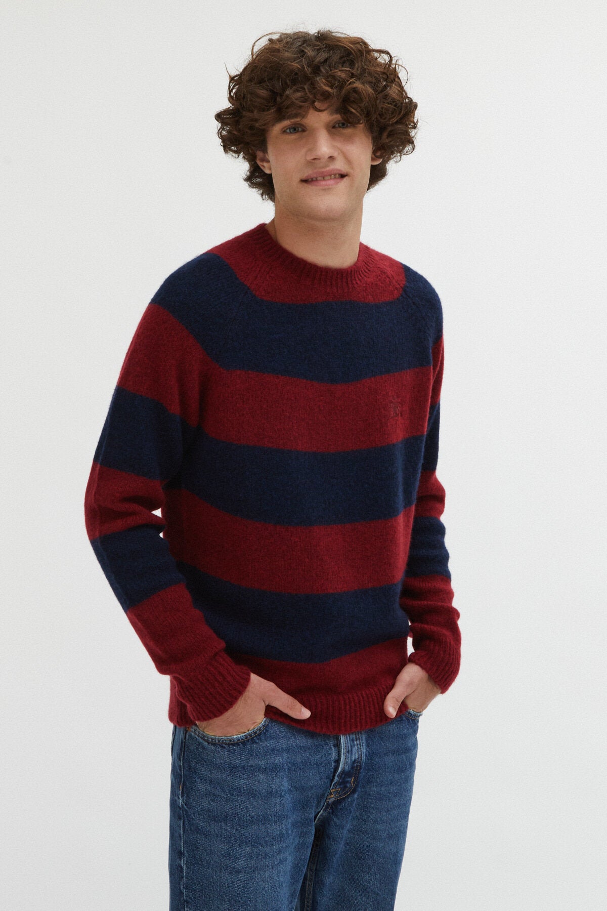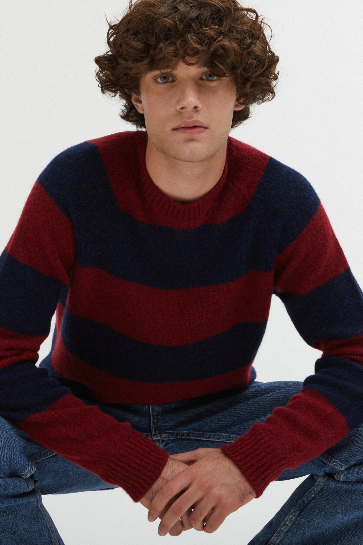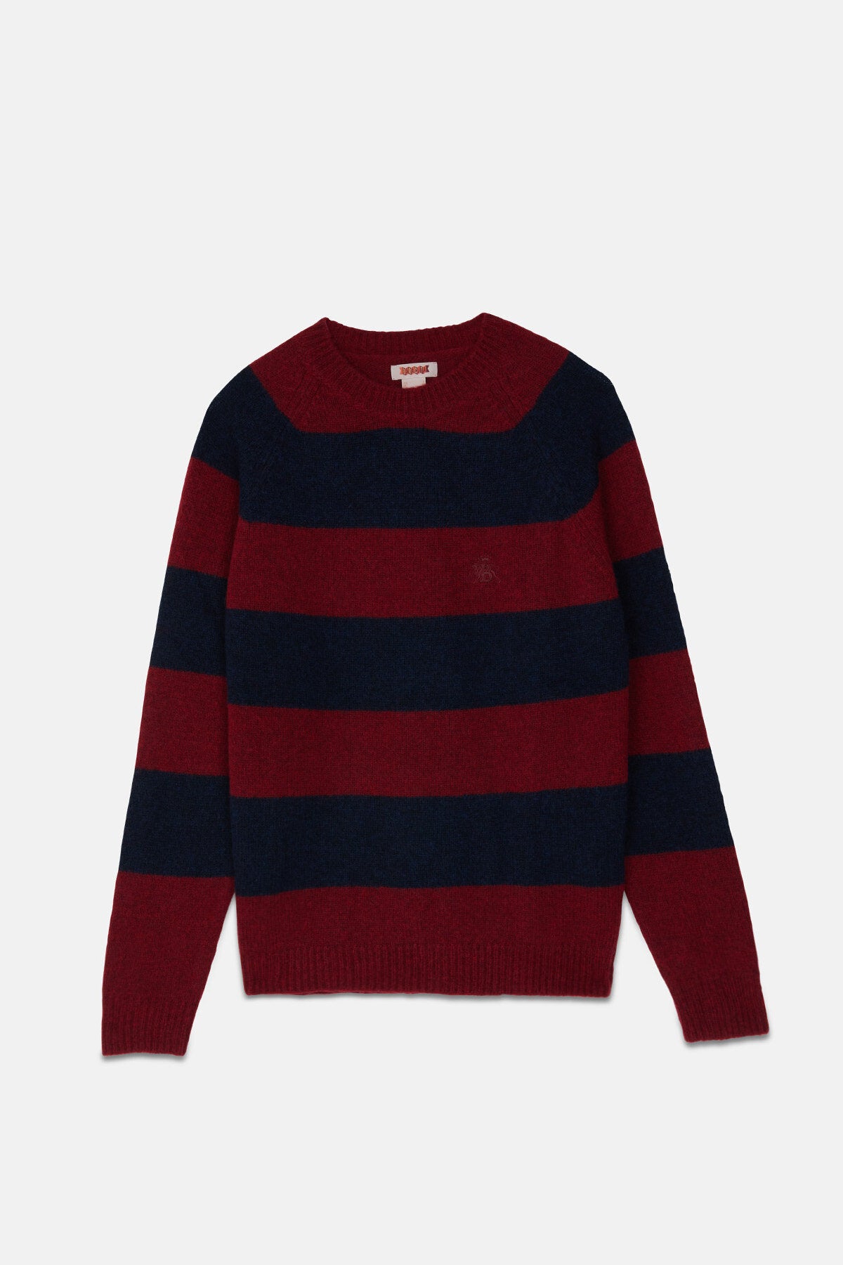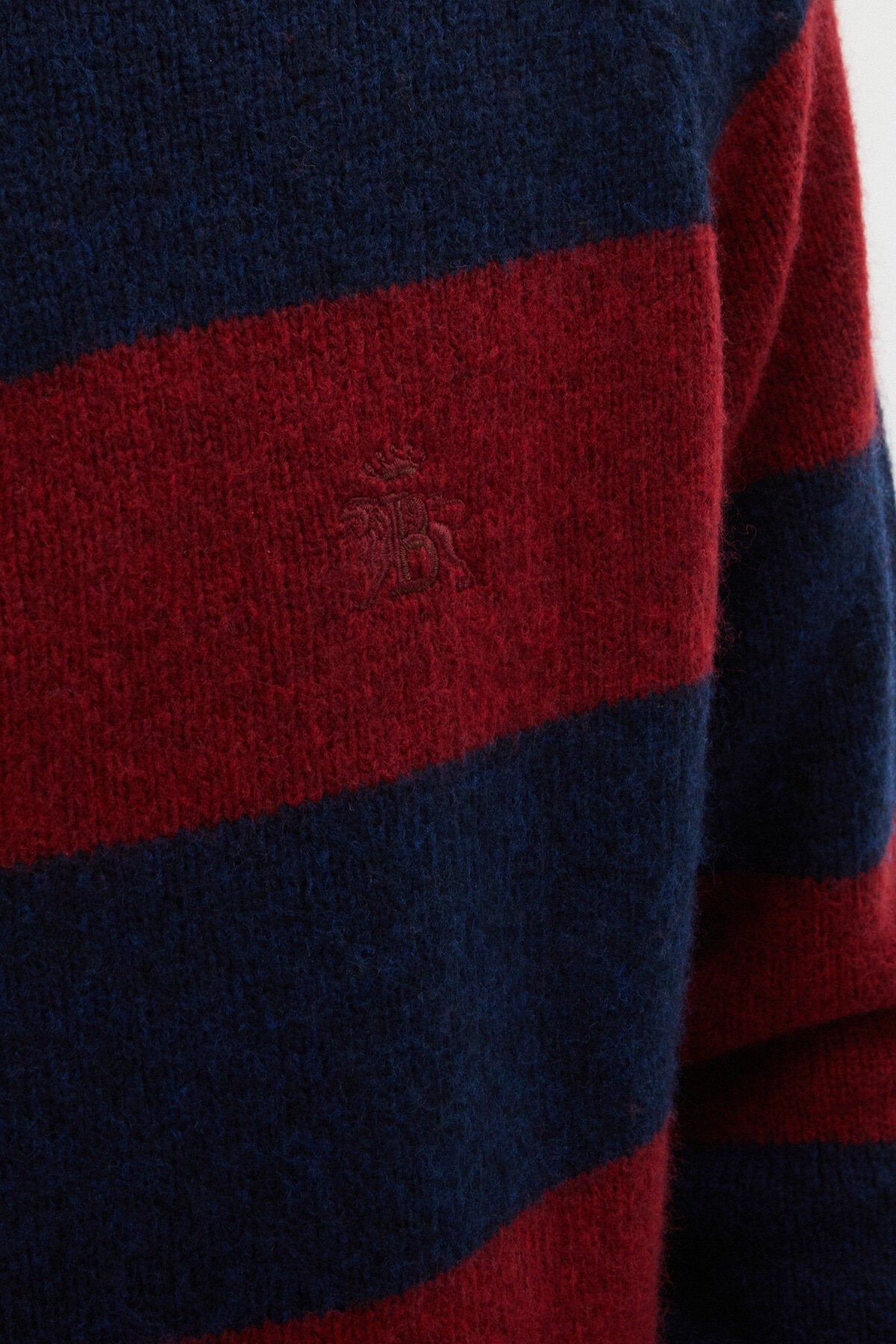 • Pullover mit Rundhalsausschnitt Shaggy Dog und kontrastierenden Streifen• Gesticktes Baracuta-Logo auf der Brust, Ton in Ton