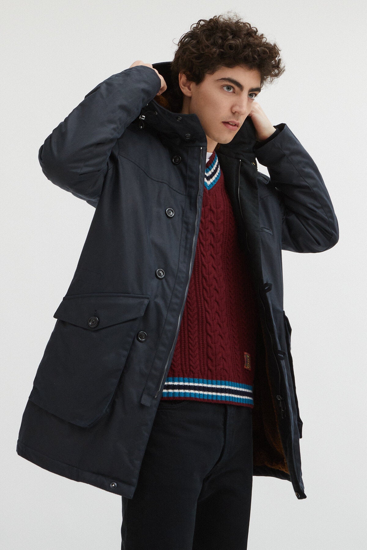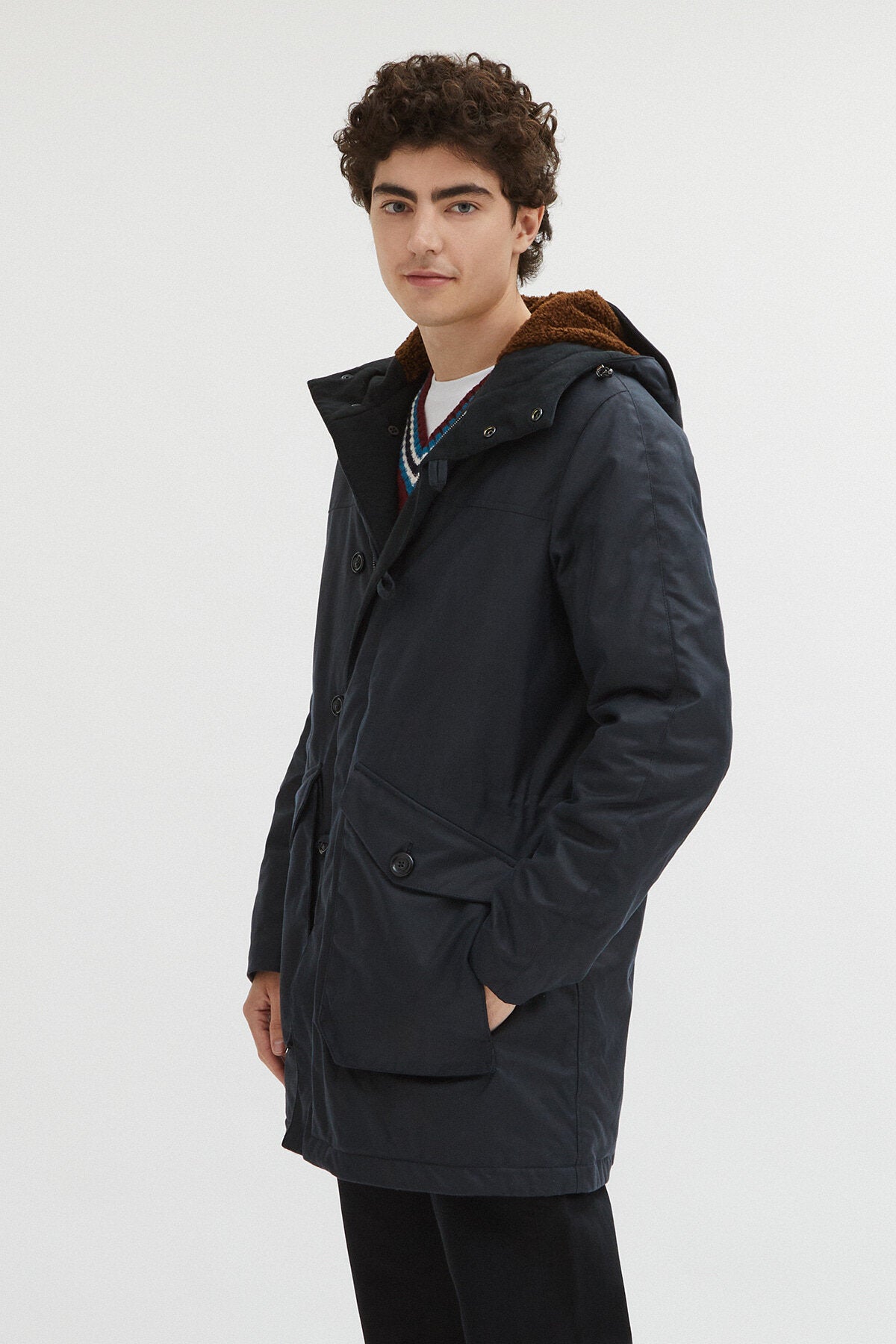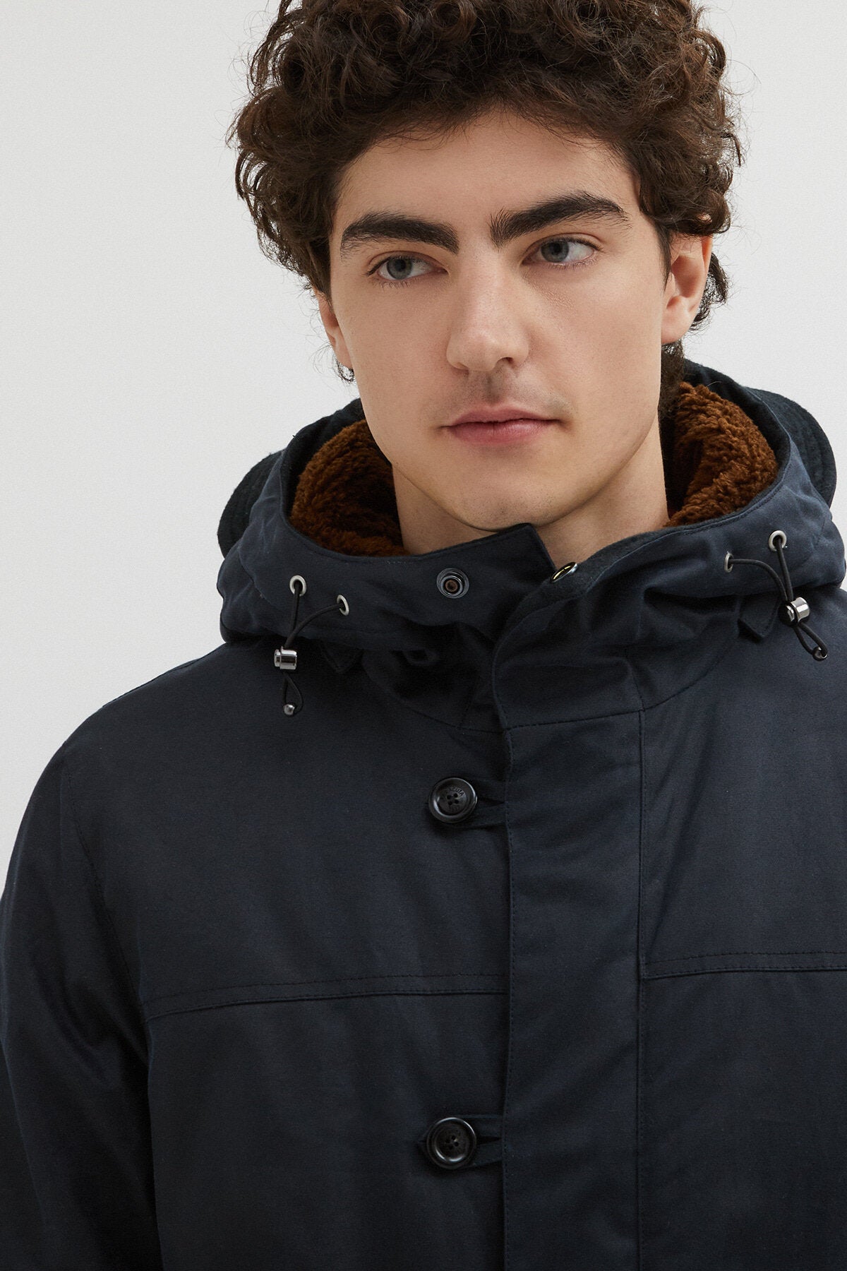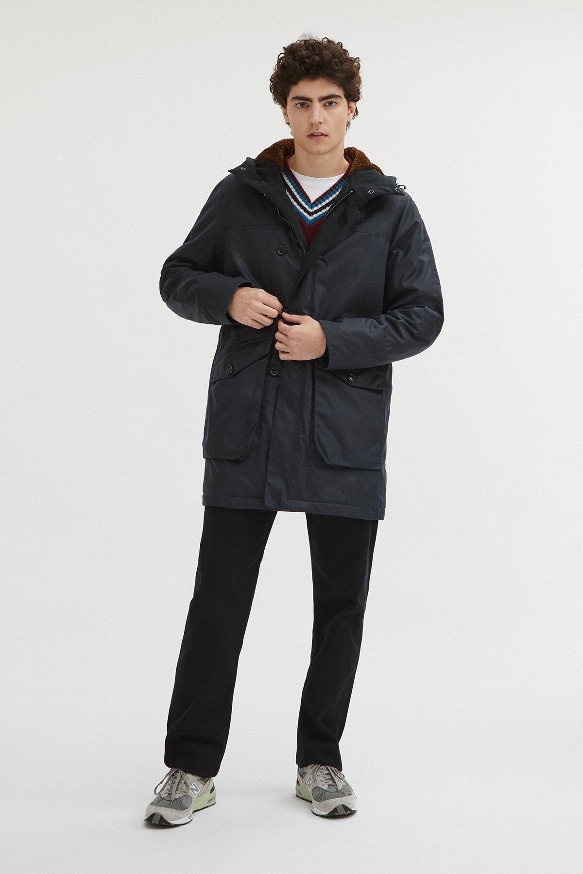 • Bereiten Sie sich auf den wärmsten Parka vor, den Sie je besitzen werden. Die Lange Jacke Terence Waxed ist der neue, vom Militär inspirierte Parka, der für die urbane Welt aktualisiert wurde. Mit gewachster Baumwolle von British Millerain auf der Außenseite und einem sehr weichen, braunen Futter im Teddybär-Stil sowie einer Thermore®-Wattierung auf der Innenseite werden Sie den ganzen Winter über trocken und warm gehalten. Zwei große Außentaschen, eine Innentasche und die allgegenwärtige Regenschirm-Rückenpasse sind ebenfalls auf der Jacke zu finden. Und das Beste daran? Die Kapuze schützt Sie komplett vor Regen. Tragen Sie sie mit unserem Wollschal Check für Winterabende.