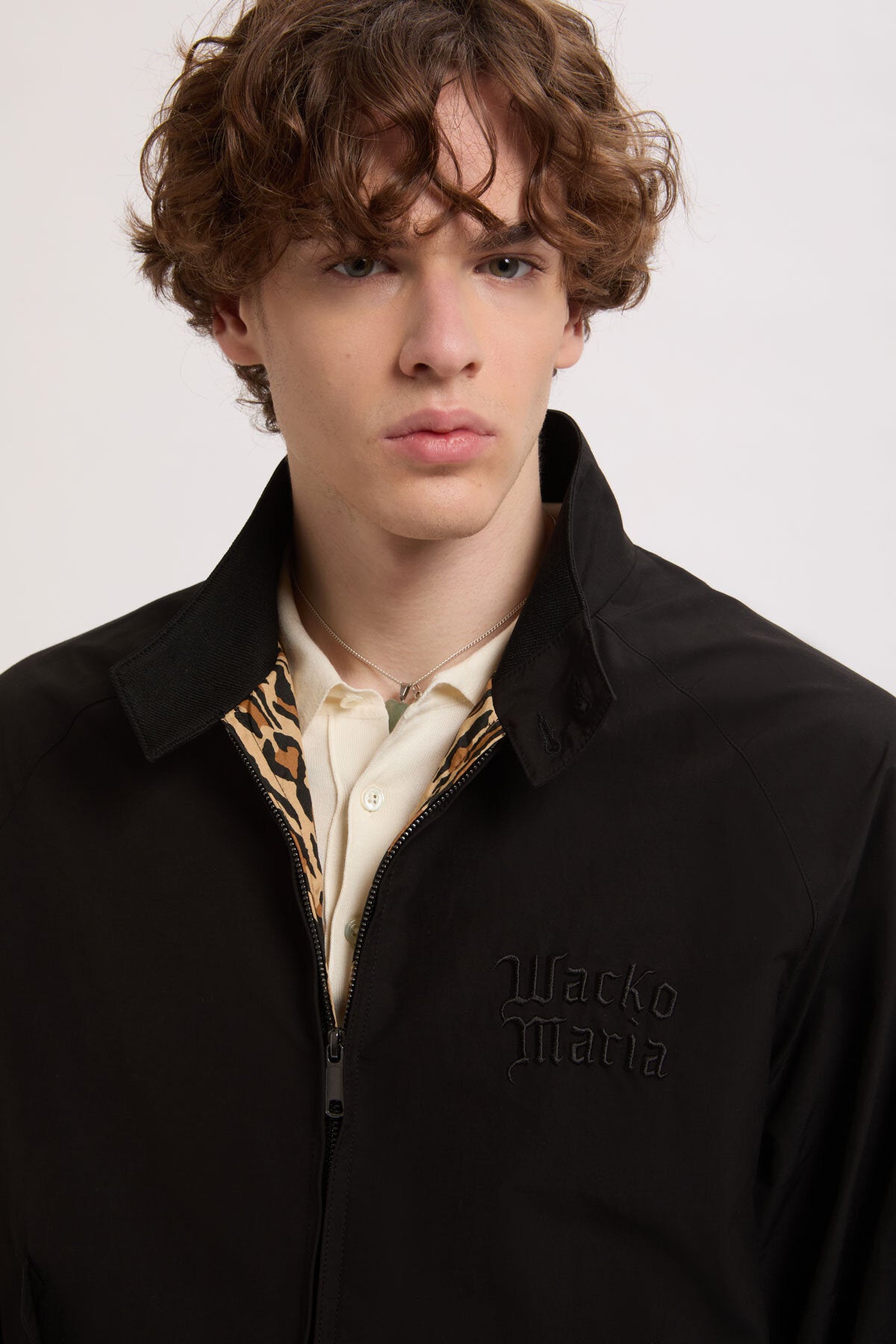 Die Jacke behält die charakteristische G9-Konstruktion bei, einschließlich der Regenschirm-Rückenpasse, der Raglanärmel und des gerippten Stehkragens mit Doppelknopfverschluss. Die Zusammenarbeit zeichnet sich durch den aufgestickten Schriftzug „Wacko Maria“ auf der Brust, eine Metallkette zum Aufhängen und ein Futter mit Leopardenmuster aus, das einen Kontrast zum klaren Äußeren bildet. Erhältlich in Schwarz und Andorra.
