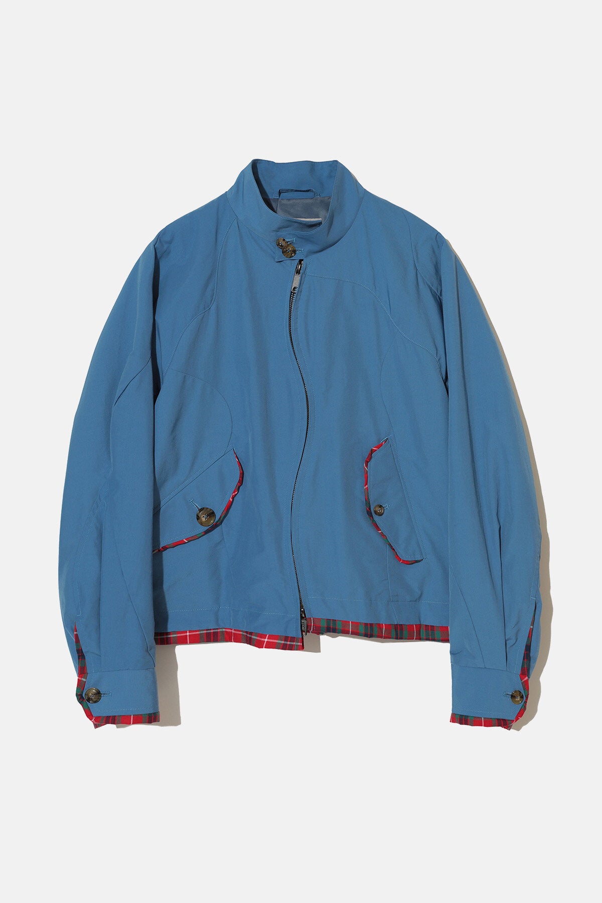 • Die Undercover x Baracuta G9 Damenjacke interpretiert die klassische G9 Harrington Jacke mit der unverwechselbaren, unangepassten Handschrift von Jun Takahashi neu. Tief in der britischen Tradition von Baracuta verwurzelt, bricht diese limitierte Edition mit Konventionen: Der geschwungene, asymmetrische Reißverschluss erzeugt eine dynamische, außermittige Linie und verleiht der ikonischen Silhouette der G9 ein neues Profil. Die Fraser-Tartan-Details sind eine Hommage an das Originalmodell. Erhältlich in drei Farbvarianten.