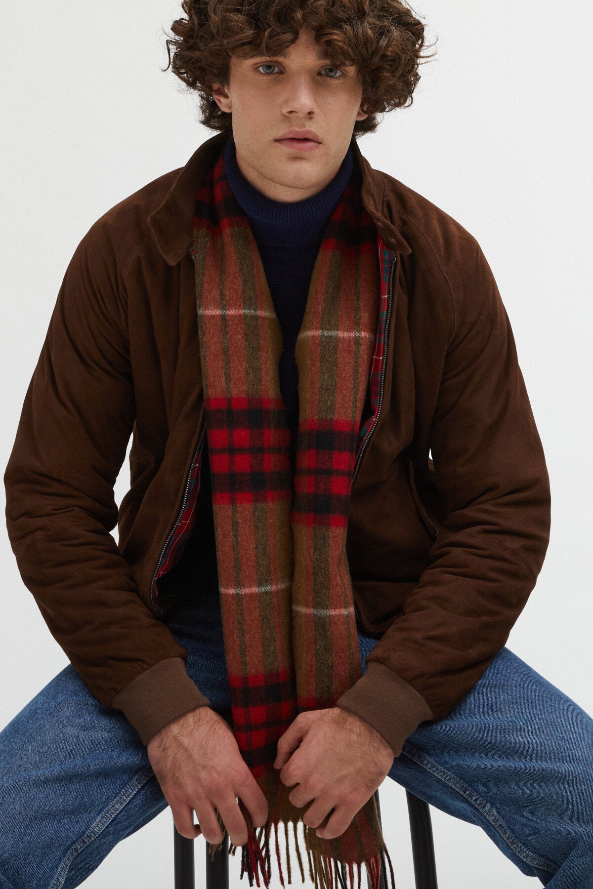 • Vergessen Sie nicht, sich diesen Winter mit unserem Schal aus Check-Wolle einzuhüllen. Er besteht aus reiner Merinowolle und wird in England in Zusammenarbeit mit Abraham Moon & Sons hergestellt, die seit 1837 für ihre feinen Wollgarne bekannt sind. Es ist in verschiedenen Farben und Mustern mit ausgefransten Enden versehen. Er ist ein Muss für die kalten Monate und das ideale Accessoire, um Ihren Winterlooks einen Hauch von Stil zu verleihen. Tragen Sie ihn mit unserem G9 Thermal und fühlen Sie sich besonders wohl, wenn Sie mit Freunden und Familie unterwegs sind.