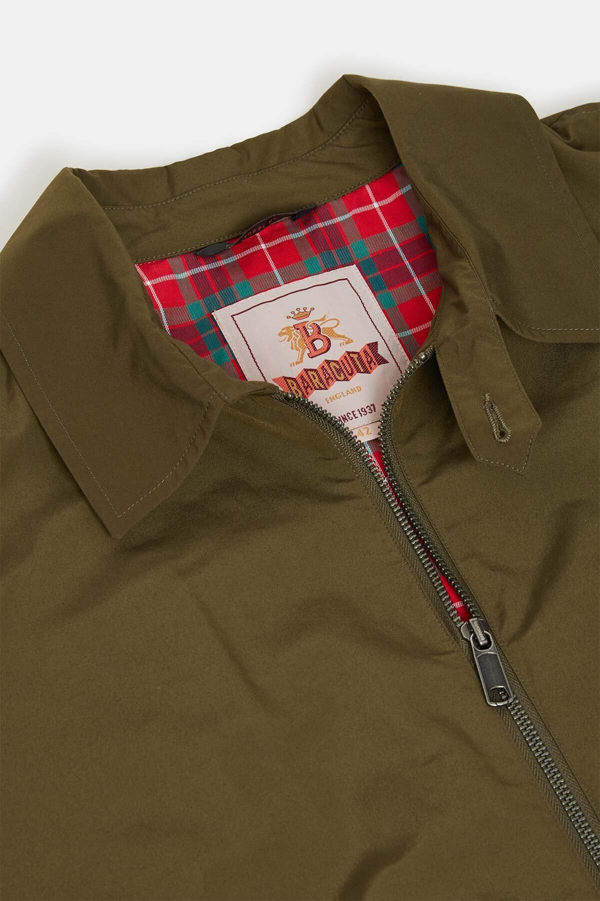 • Il G18 di Baracuta reinterpreta un capospalla classico di fine anni '60, proponendolo in un design elegante e moderno realizzato nell’iconico tessuto Baracuta, orgogliosamente Made in the UK. La sua silhouette morbida segue i tuoi movimenti grazie alle due pieghe, mentre il cinturino sul collo a bottone singolo, la chiusura a zip con logo e doppio cursore e le tasche ispirate ai modelli blouson degli anni '70 aggiungono al capospalla un tocco distintivo ma contemporaneo, preservandone lo stile pratico e senza fronzoli. Interamente foderato nel caratteristico Fraser Tartan, il G18 è pronto ad accompagnarti nelle avventure in città e in campagna. Più che un revival, è una deliberata dichiarazione di stile. Ogni dettaglio riflette un dialogo tra heritage e modernità, funzionalità e moda, esprimendo l’indiscutibile rilevanza culturale di Baracuta.