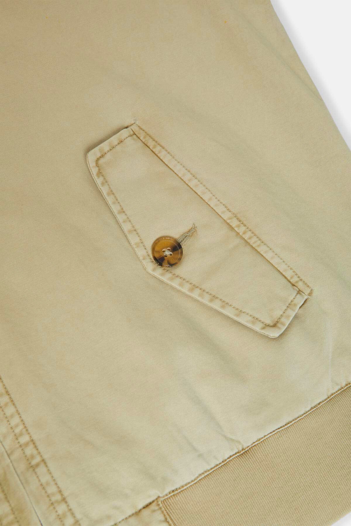 • • Tasca interna realizzata con il tessuto esterno e dotata di chiusura con bottone personalizzato Baracuta