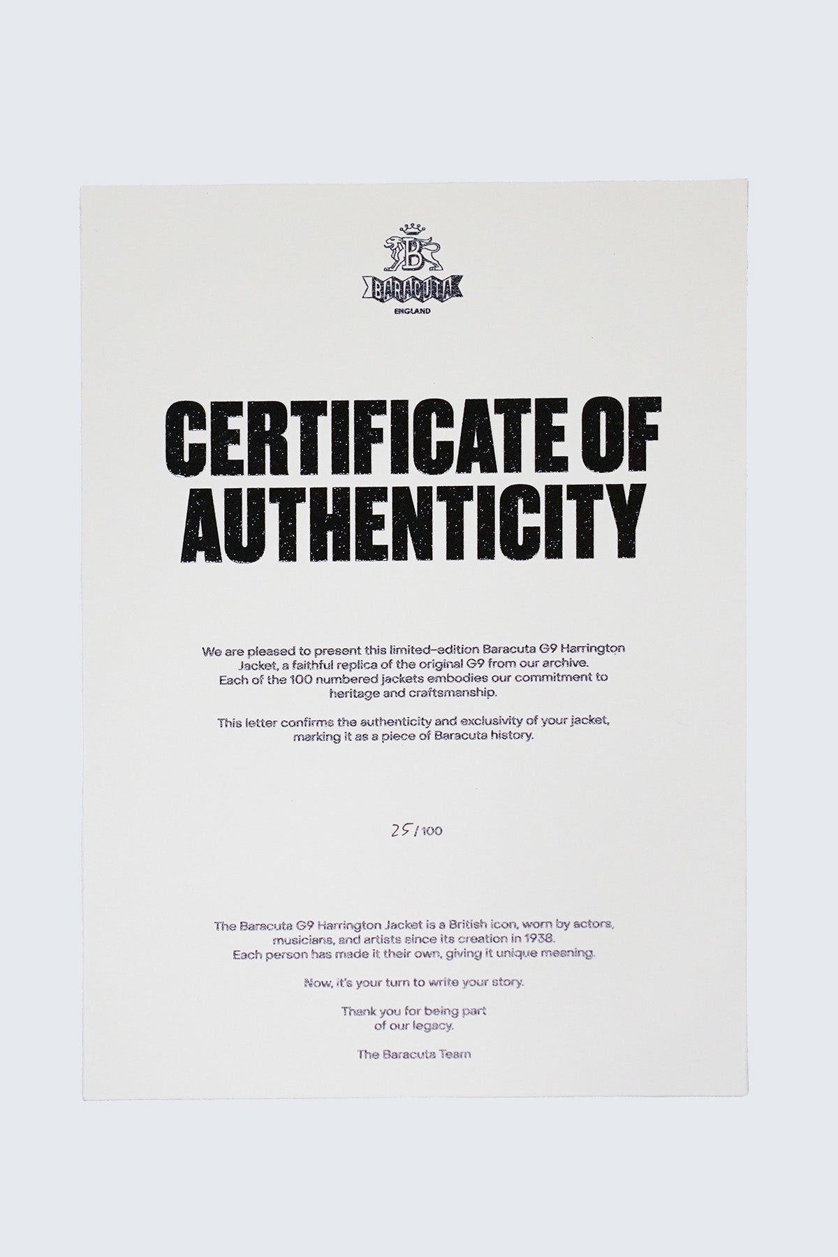 Ognuna delle 100 giacche numerate incarna il nostro impegno per la tradizione e l'artigianato, segnandola come un pezzo di storia Baracuta. Questa esclusiva giacca è realizzata nel Regno Unito.