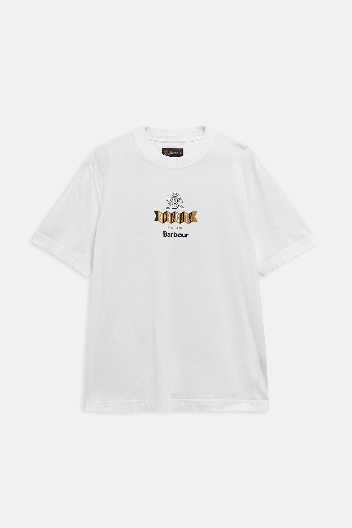 Offering a premium addition to your everyday essentials, the Barbour x Baracuta Vinyl Oversized T-shirt makes a statement choice. Showcasing a large graphic vinyl to the back and small dual branding to the front, this bold choice is perfect for adding a bold finishing touch to any outfit.