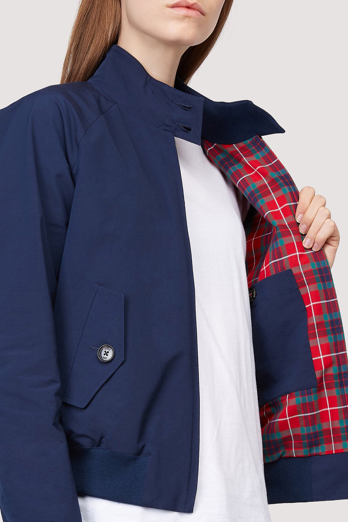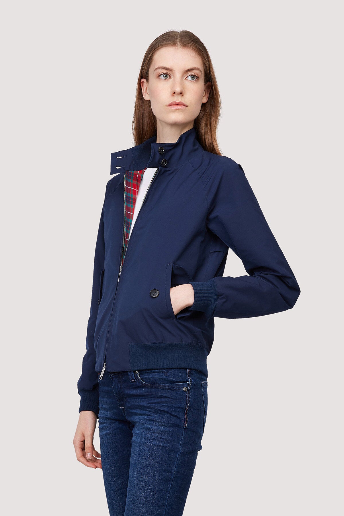 • The Baracuta G9 Woman Slim epitomizes timeless style, offering a distinctive and iconic jacket designed to enhance the contemporary woman's fashion sense. This version, slightly slimmer than other models, maintains signature G9 features such as the Fraser Tartan lining, umbrella back yoke, and dog-ear collar. Whether navigating city streets or exploring the countryside, the G9 Woman Slim is the ideal street style piece - a must-have wardrobe essential for every season.