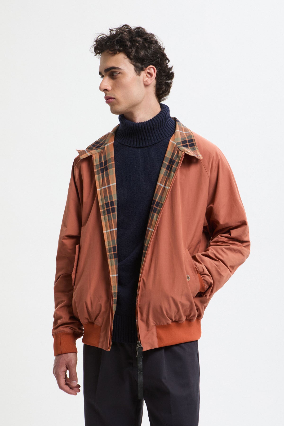 This fully reversible jacket offers two looks in one, featuring an exclusive take on Baracuta’s classic check pattern. Inspired by vintage tracksuits, the hem ribbing has been reinforced for a sharper finish, while the widened neckline subtly reveals the lining beneath. Details matter here: a two-way front zip rocks N.Hoolywood’s signature leather pull tab, engraved with the brand’s logo, alongside Baracuta’s original buttons. Inside, the placket uses Baracuta’s clever kite-threading to stop the slider catching, because it’s the little things that count. Plus, there’s a hidden mini pocket for care labels under the back rib on the checked side, and a double-branded tag tucked neatly inside the pocket.