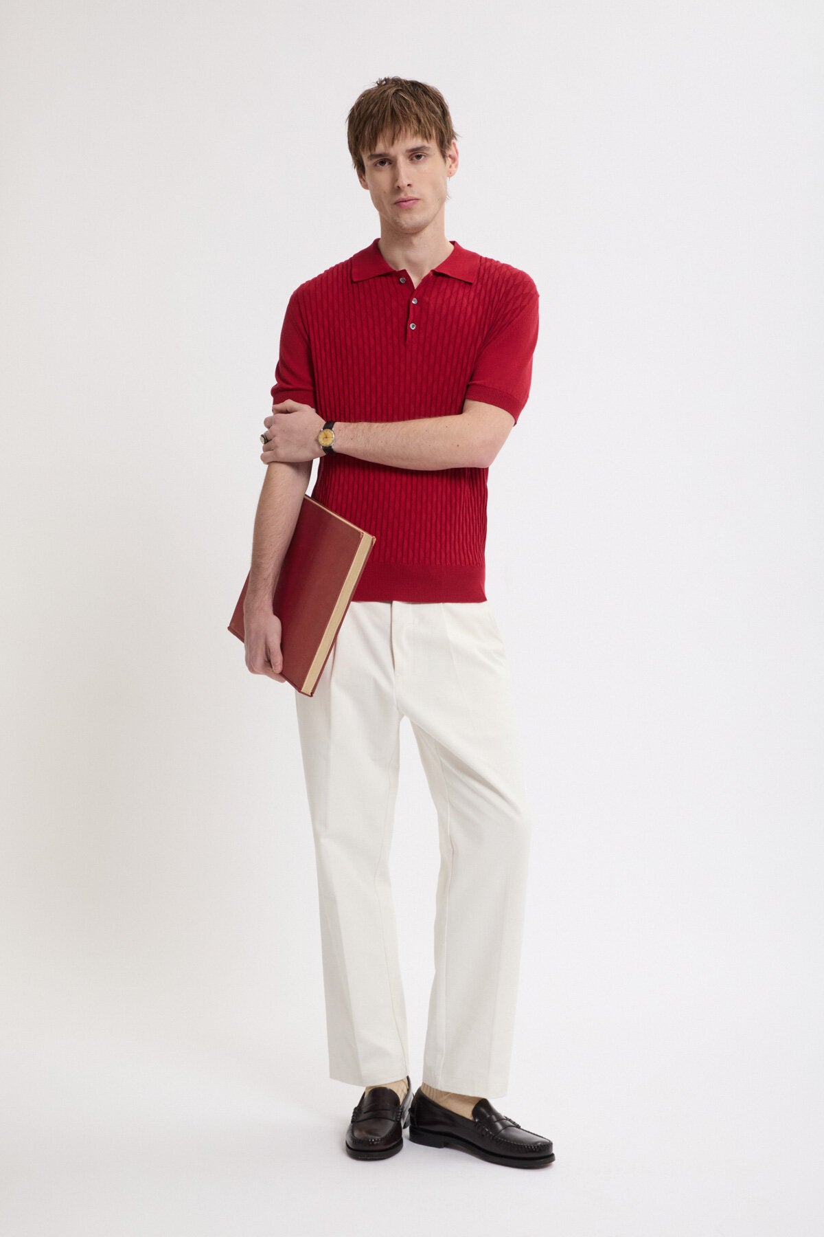 • The Pattern Stitch SS Polo is made from 100% cotton, carefully selected for its durable finish. Cotton provides natural breathability and resilience, making it ideal for everyday wear. The standout feature is the diamond-pattern stitch on the front, a detail achieved through careful knitting.